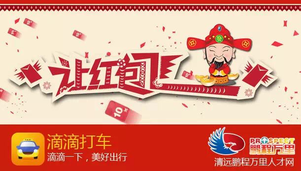 【清远鹏程万里】和腾讯知名打车平台【滴滴打车】携手合作,在羊年给大家送上开门红,为广大粉丝朋友送上总额10万元的打的红包!以后打的我们打“霸王的”。